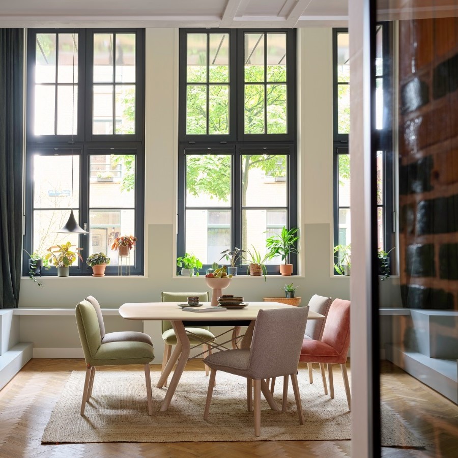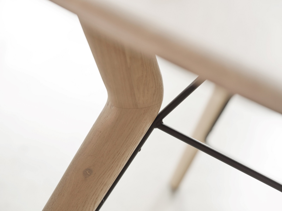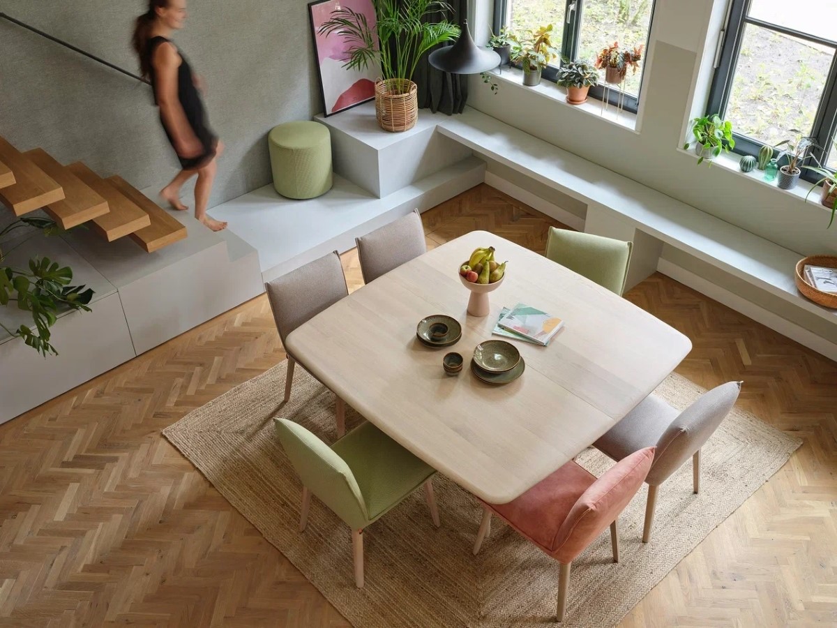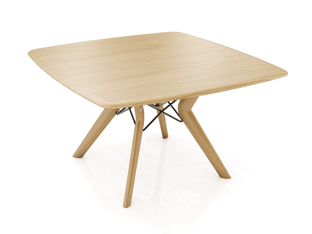 Компактный квадратный обеденный стол из массива дуба рассчитан на 6-8 посадочных мест. Столешница с изящно отфрезерованным и скругленным краем. Точеные дизайнерские ножки скрепляет ажурная металлическая деталь. Два размера квадратного стола, а также круглый стол в 5 размерах. 18 оттенков тонировки промасленного массива от выбеленного дуба до темно-коричневого под венге. Производитель: Mobitec, Бельгия.