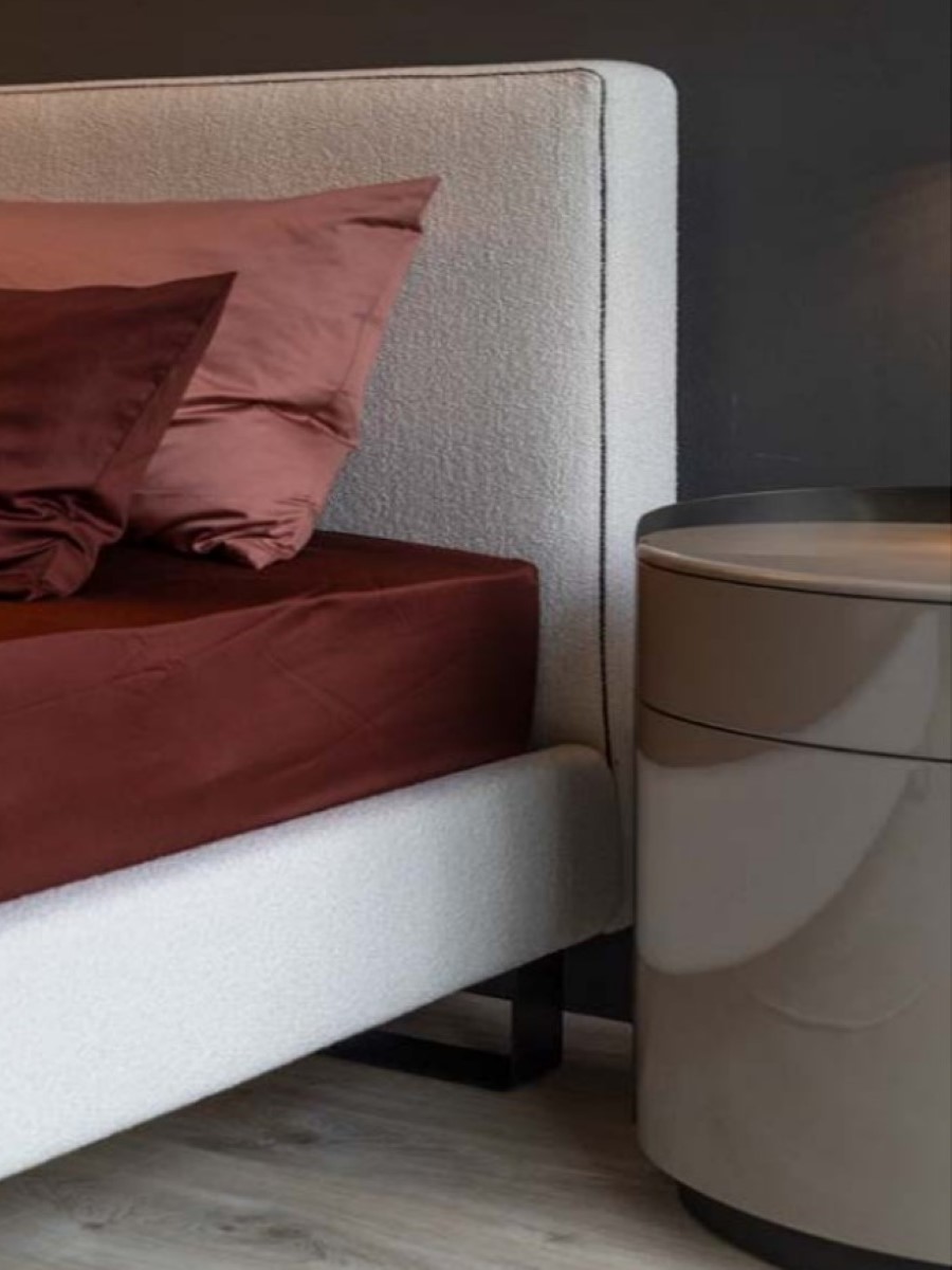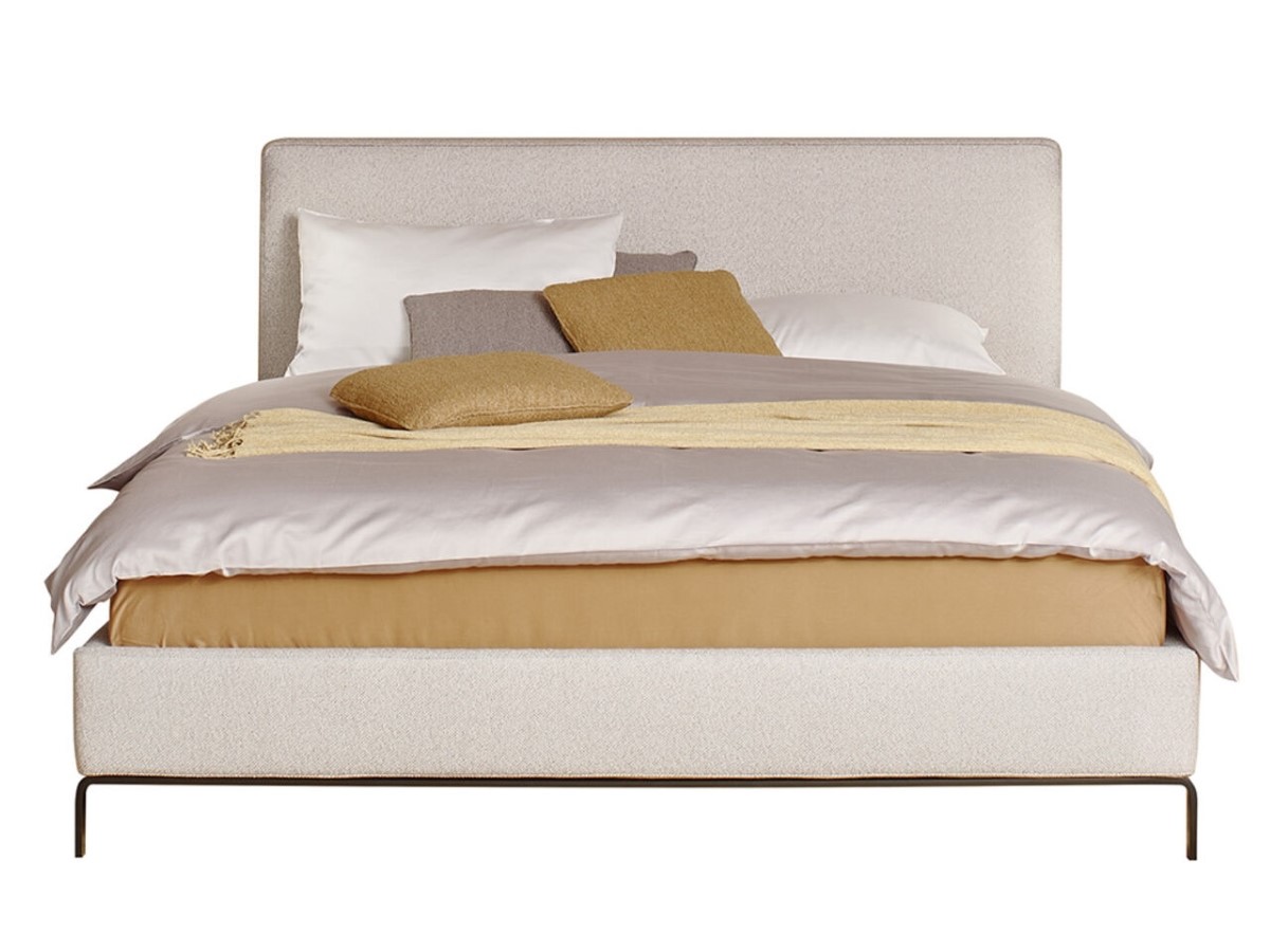 Подчеркнуто простые геометрические формы + селективные обивки премиального качества и изысканные детали — идеальная комбинация для спальни в стиле минималюкс и «тихая роскошь». Вшитая в швы изнутри контрастная репсовая лента подчеркивает идеальные линии строчки и элегантный силуэт спинки. Мягкая двуспальная кровать Chiara на металлическом основании-скобе стандартно предлагается в 6 популярных размерах: со спальным местом шириной 120, 140, 160, 180 и 200 см. Высота спинки — 97 см, опционально — высота 107 см. Возможно изготовление кровати длиной 210 или 220 см, ширина спального места 90 или 100 см. Каркас кровати — массив натурального бука, обтянутый мягким слоем холодной пены. При ширине кровати >160 см кровать поставляется в дополнительной царгой и подпорной ножкой. Цвета ножки-скобы: черный матовый, rauch braun, хром. Варианты обивки: букле, микровелюр, рогожка, твид, ткань с плетением шанель, натуральная кожа, шенил, рогожка-шенил. Производство: Christine Kroencke, Германия.