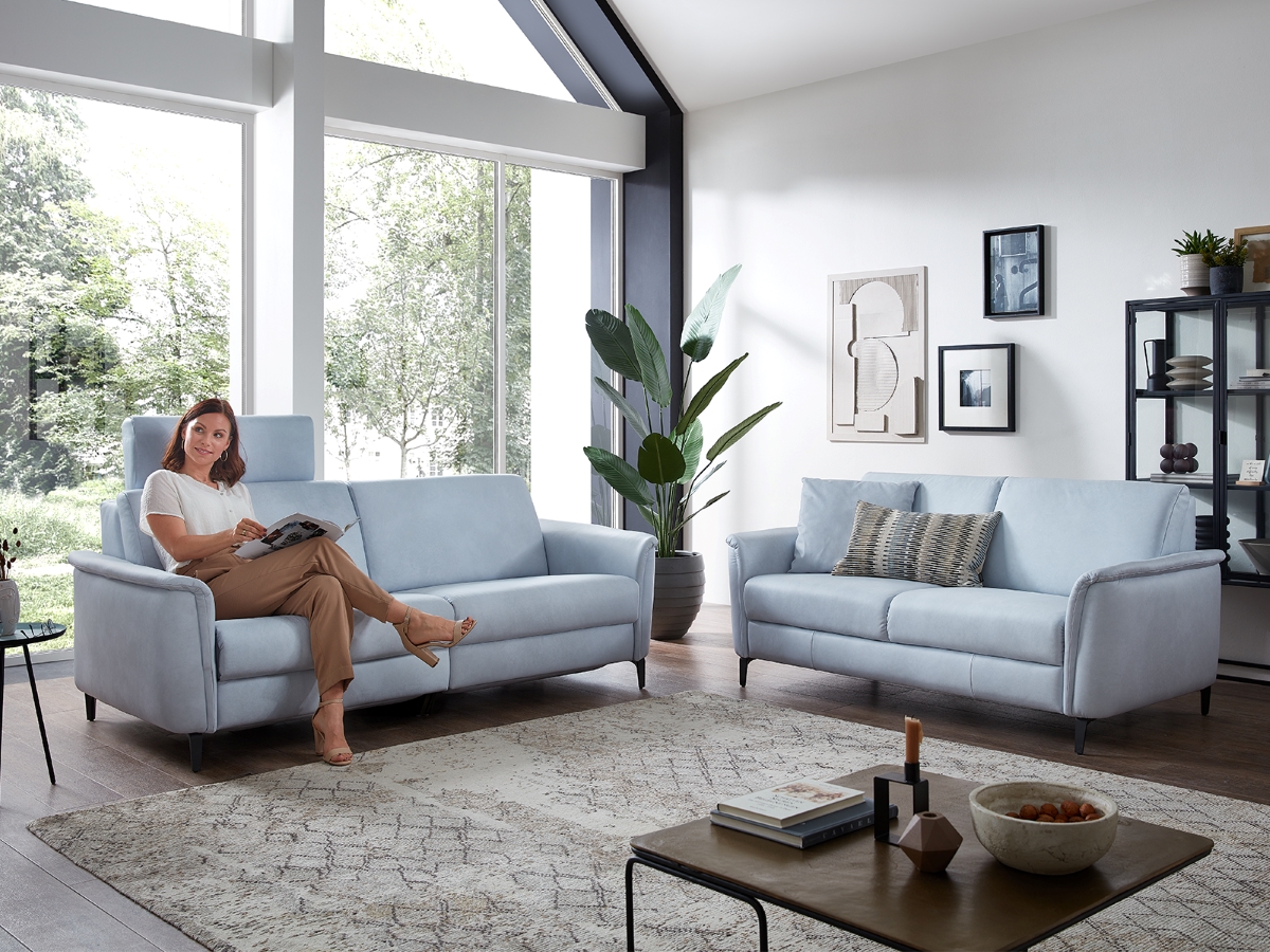 Современный диван с элегантными подлокотниками и smart-функциями для домашнего кинотеатра. Встроенный реклайнер с электромотором и бесступенчатой регулировкой положения тела. Дополнительные опции: — инфракрасный прогрев тела, — регулируемый подголовник. В линейке: 2х- и 3х-местный прямой диван, угловые композиции. 4 дизайна ножек: массив дерева (11 оттенков) или металл (хром, черный матовый). Обивки: шенил, рогожка, натуральная кожа, микровелюр, букле, твид. Гарантия фабрики: 5 лет. Производство: Германия.