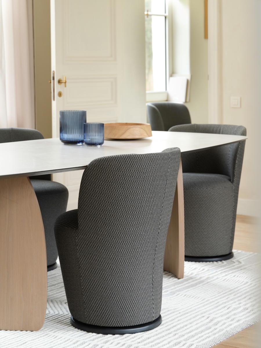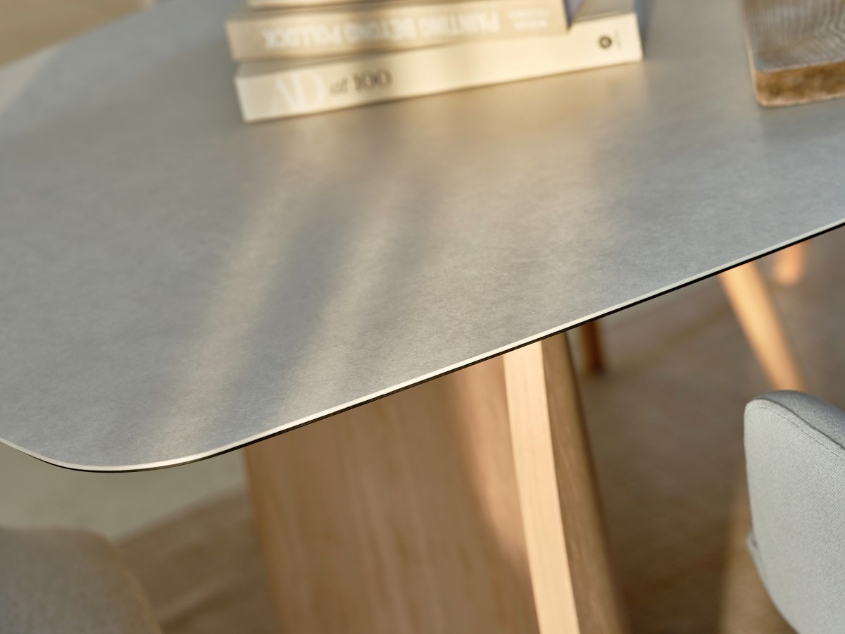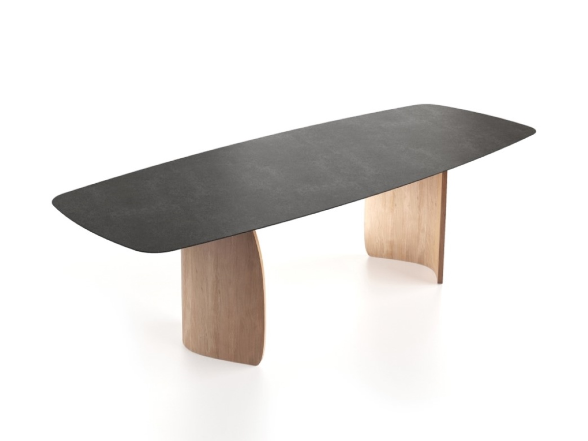 Дизайнерский обеденный стол Dolmen с овальной столешницей из керамики — находка для ценителей неординарных решений и элегантных форм. Дизайн Dolmen предлагает две трендовые формы столешницы: классическая овальная и асимметричная, в виде морской гальки. 6 размеров от 100х200 см до 120х300 см. Без раскладки. Оригинальные ножки стола в виде выгнутого листа из массива натурального дерева могут быть ориентированы наружу или внутрь, в зависимости от Вашего желания. Материалы: керамика (6 цветов), массив дуба (30 вариантов, включая акцентные цвета из палиnры Monochrom). Дизайнерская мебель Mobitec, Бельгия.