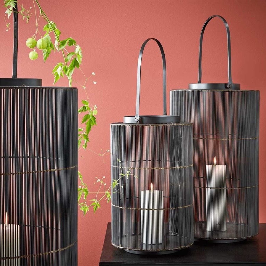 Лаконичные и воздушные латерны Kazumi, навеянные образами японской эстетики, изготовлены вручную из металлической проволоки. Проволочный каркас цвета графита в точках крепления деликатно украшен каплями из латуни. Металлическая проволока прошла 6 этапов обработки, чтобы обрести защиту от дождевой воды, перепадов температур, морских брызг и палящего солнца. Высокие садовые подсвечники защитят пламя свечи и помогут создать уютную атмосферу в саду, на открытой террасе, в беседке, а в холодный сезон — в гостиной, у камина, в спальне или в домашнем кабинете. Премиальная indoor/outdoor коллекция марки Lambert, Германия.