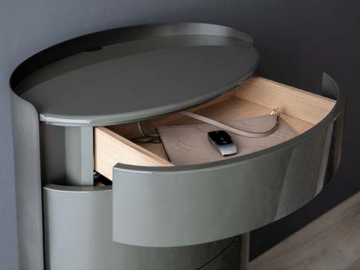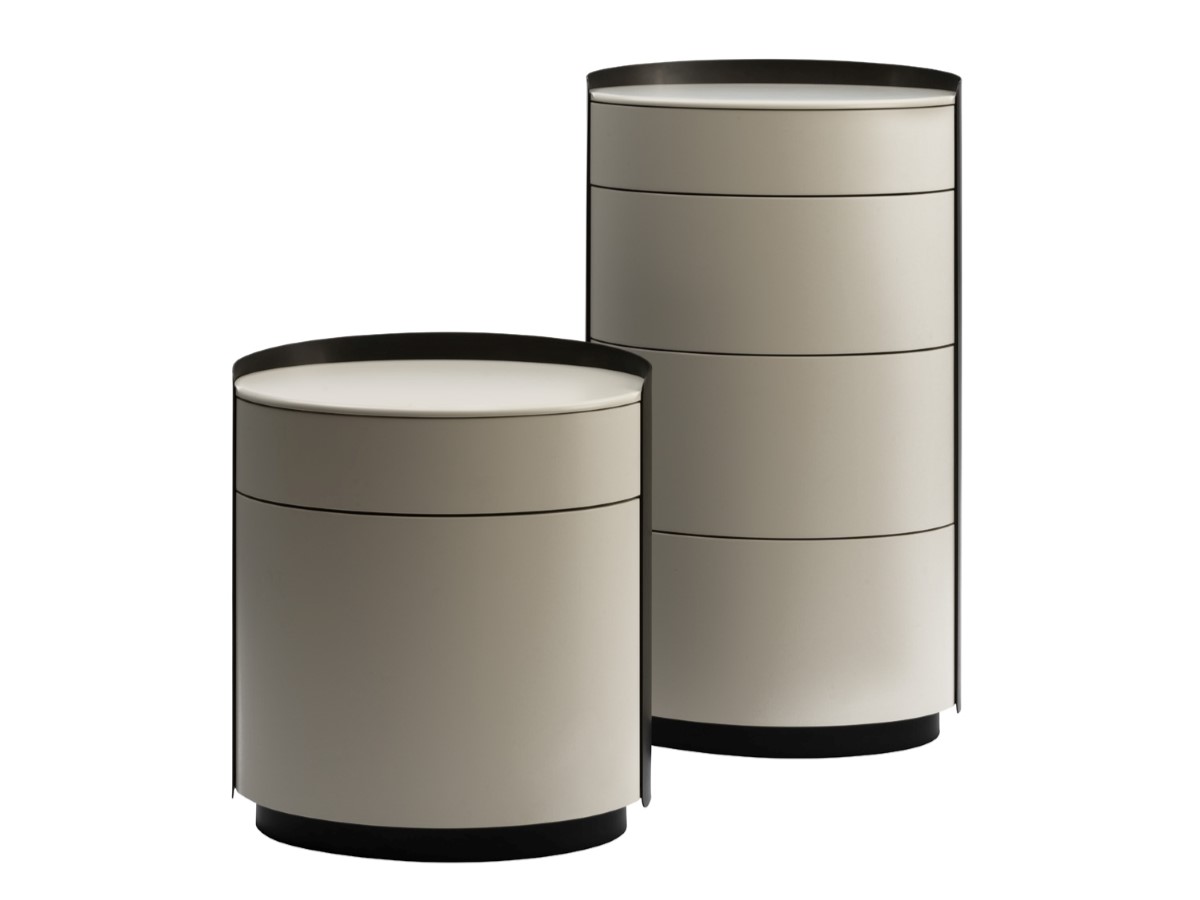 Дизайн: Стефан Файт / Stepham Viet. Элегантные комоды Kira овальной формы с выдвижными ящиками и металлической задней стенкой добавит визуальные и смысловые акценты в интерьер гостиной, спальни, прихожей. Пластичные линии комода сзади повторяет изогнутый металлический фартук, чуть выступающий за края корпуса. Чуть утопленный тон украшен фигурным фацетным кантом. Регулируемый по высоте цоколь 55 мм. Материал корпуса: МДФ. Отделки: глянцевый или матовый лак 13 цветов, натуральный шпон дуба (3 оттенка) или окраска по RAL/NCS. Металлический фартук дымчато-серого цвета или матовый лак из фирменной палитры марки. Опционально: вырез в задней части столешницы под вывод кабеля. Производитель: Christine Kroencke, Германия.