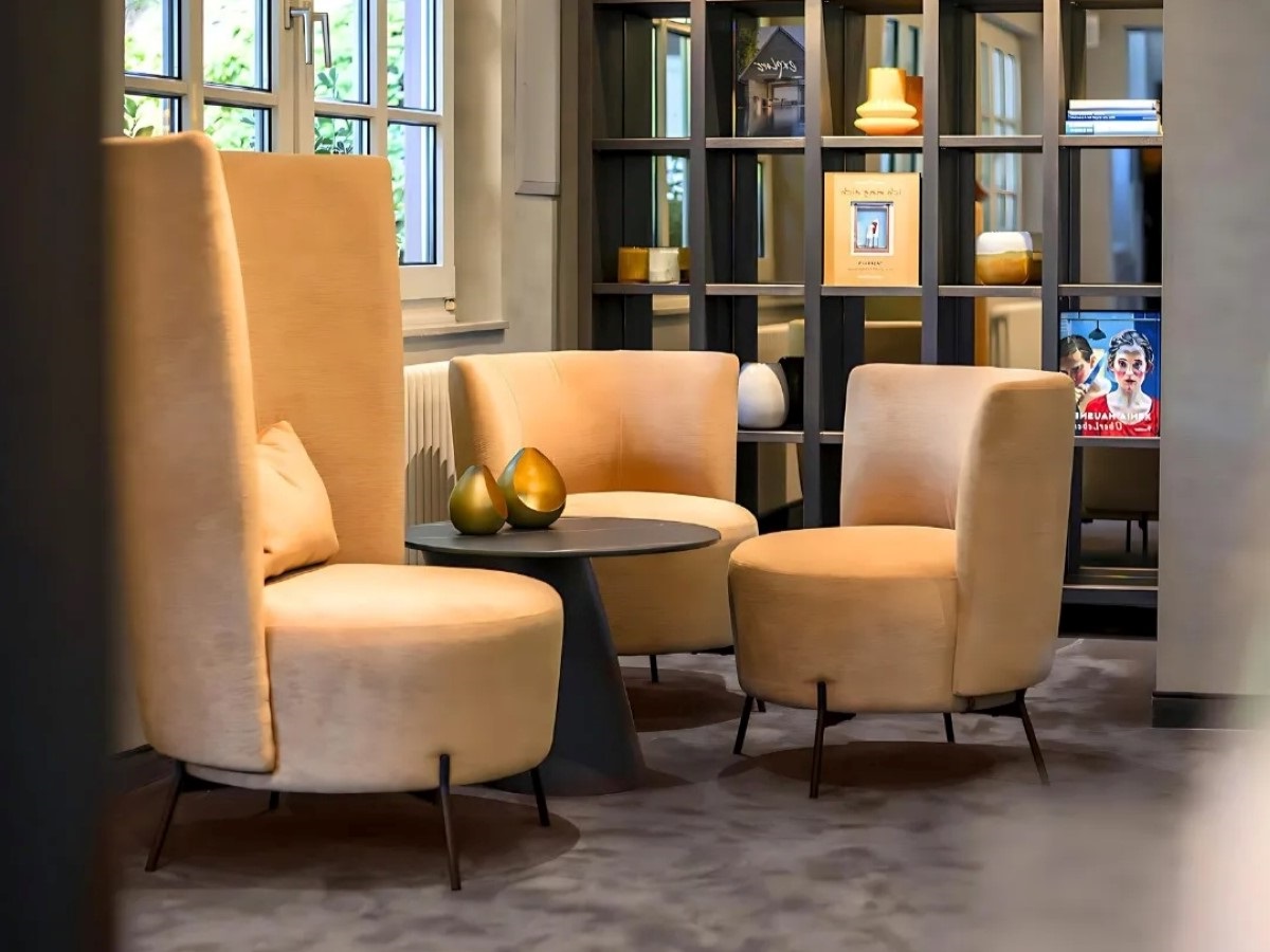 Маленькое уютное кресло во французском стиле с цветными ножками из металла. 22 цвета металлических ножек в комбинации с объемным букле, вискозным велюром, многоцветным твидом или орнаментными жаккардами позволяют создать элегантный монохромный или задорный креативный образ. Глубокое сидение с горизонтальными пружинами nosag и 4-слойным мягким наполнителем, встроенные в каркас спинки эластичные ремни уверенно поддерживают мышцы спины. Производство: Mobitec, Бельгия.