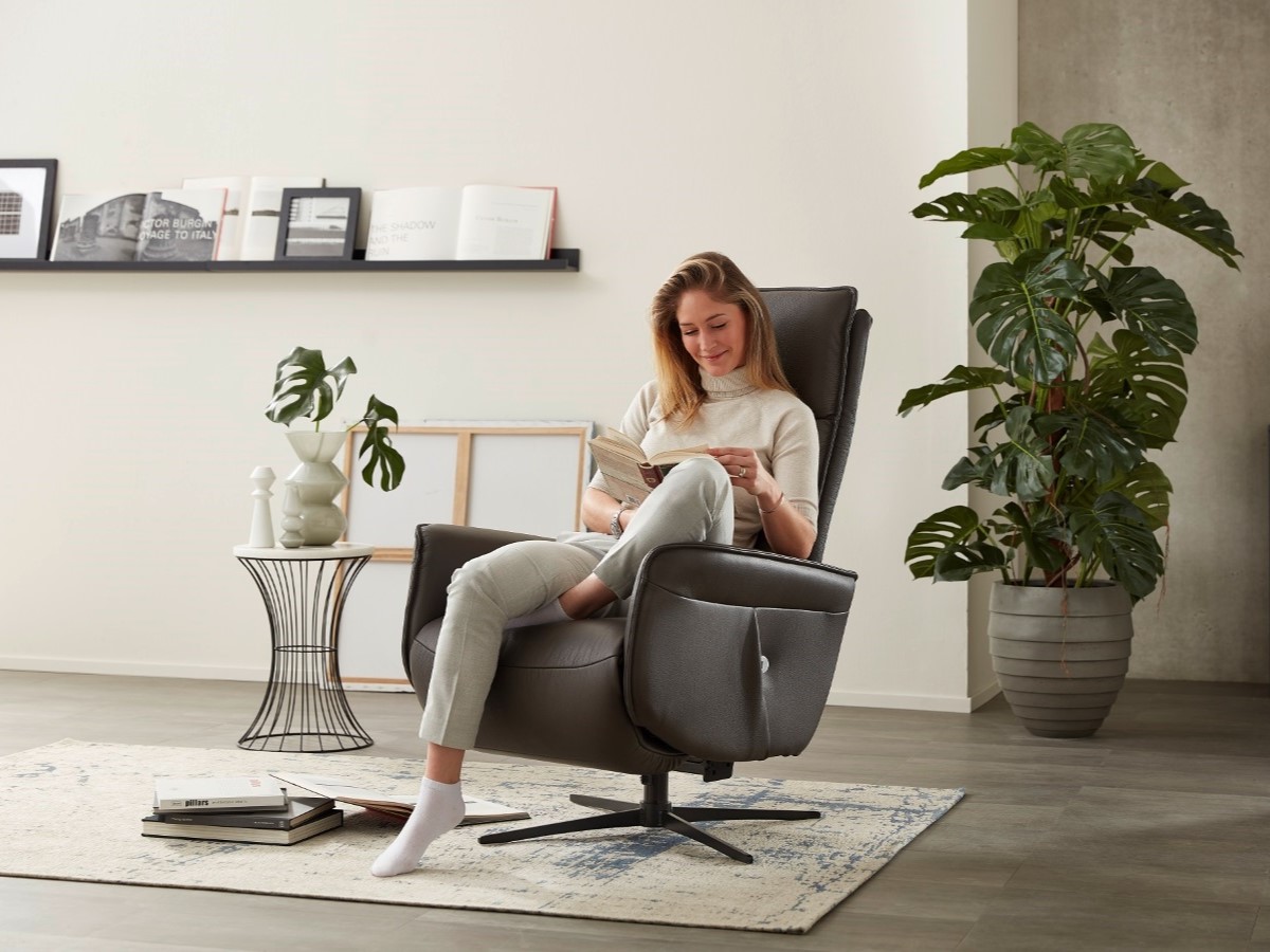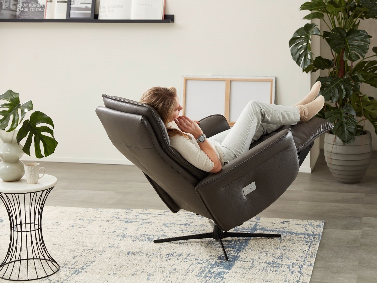 Премиум-комфорт и элегантность. Вращающееся кресло TV-Canberra с моторизированным реклайнером и релакс-функциями для домашнего кинотеатра, гостиной, домашнего кабинета: — бесступенчатая регулировка положения тела, — 2 бесшумных мотора, — встроенная система контроля положения для баланса сосудистой системы, — регулировка верхней части спинки. Опционально: — запатентованная технология прогрева тела инфракрасным теплом Therno-Vital, — USB-слот, — функция помощи при вставании, — аккумулятор. 3 варианта высоты для пользователей ростом до 173 см, до 185 см и выше 186 см. 3 варианта основания: стальной диск, «звезда» (хром / черный матовый), диск в натуральном шпоне дерева, матовый черный. Управление: кнопки, пульт. Отделки: натуральная кожа, ткани AquaClean, микровелюр, твид, эко-кожа. Производство: Германия. Гарантия фабрики — 5 лет.
