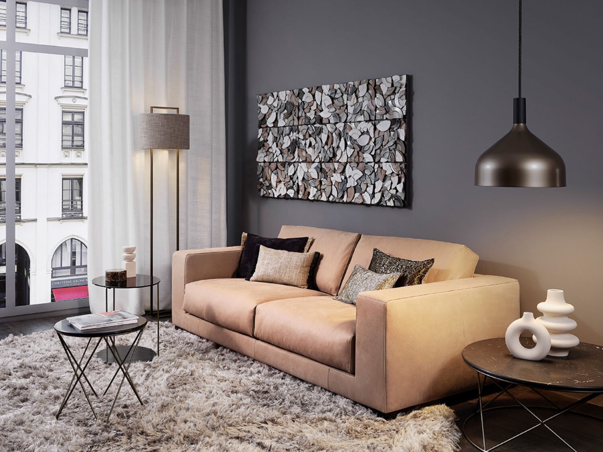 Стильная и визуально легкая композиция для ТВ-зоны в гостиной. Эксклюзивная модель фабрики nobilia. Эффектный фасад из полимерного матового стекла цвета Titan с глубокой оптикой. Лаконичный дизайн мебели без ручек, благородное сочетание серых фасадов и стеновой панели для ТВ с фактурой и оптикой натурального дерева карамельных оттенков. Альтернатива: МДФ-фасады с полимерным стеклом белого цвета. Индивидуальный проект мебели в гостиную.
