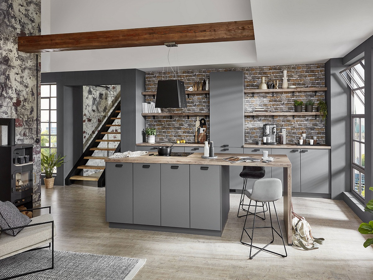 Лаконичные и стильные кухни SENSO с премиальными ультраматовыми фасадами в эмали "серый сланец" с высокотехнологичным покрытием от отпечатков пальцев. В сочетании с рифленой стеновой панелью в "медовом" оттенке светлого дерева и тонкой столешницей Xtra с оптикой камня как прямая кухня, так и вариант с островом выглядят впечатляюще. Оригинальные черные ручки в стиле industrual дополняют трендовый образ интерьера. Широкий размерный ряд шкафов и колонн позволяет создать индивидуальный кухонный гарнитур для помещения любого размера с точностью до миллиметра.